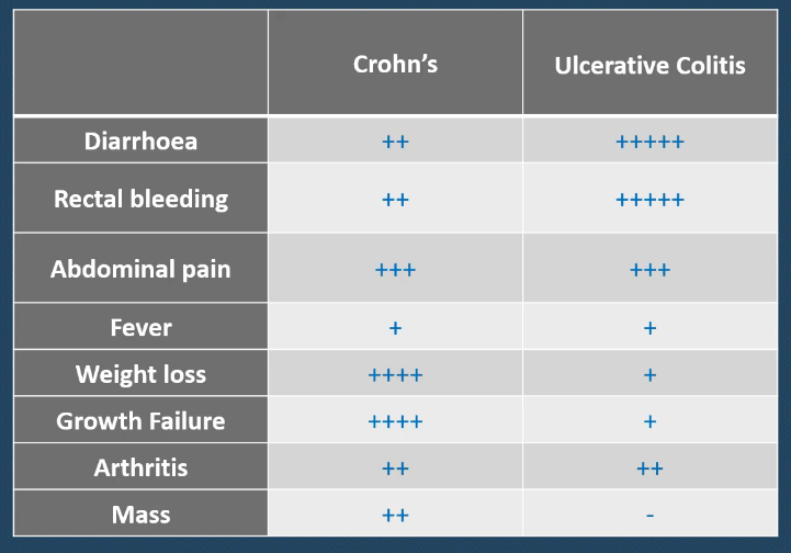 What is the main difference between the presenting features of ulcerative colitis and Crohn’s disease?