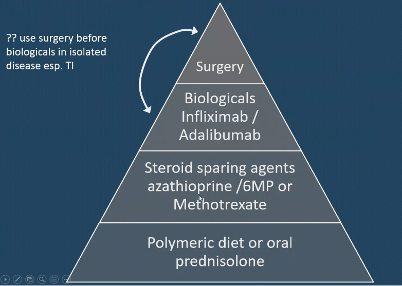 Describe the “bottom up” treatment approach for Crohn’s disease?