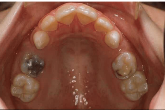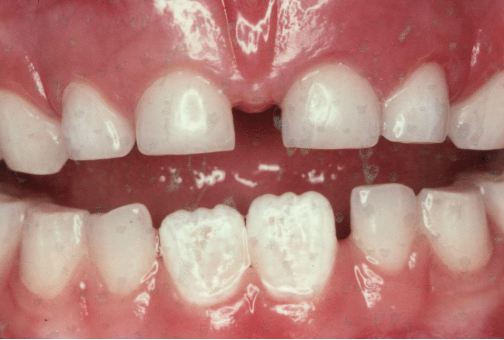 what is the likely cause of the general appearacnnce of the lower central incisors