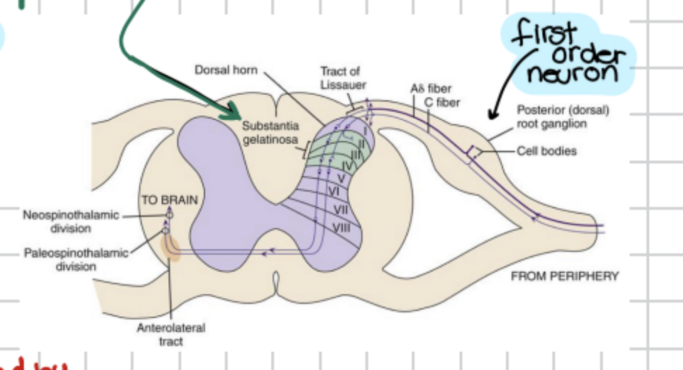 in the spinothalamatic pathway there are 2 bundles: neo and paleo