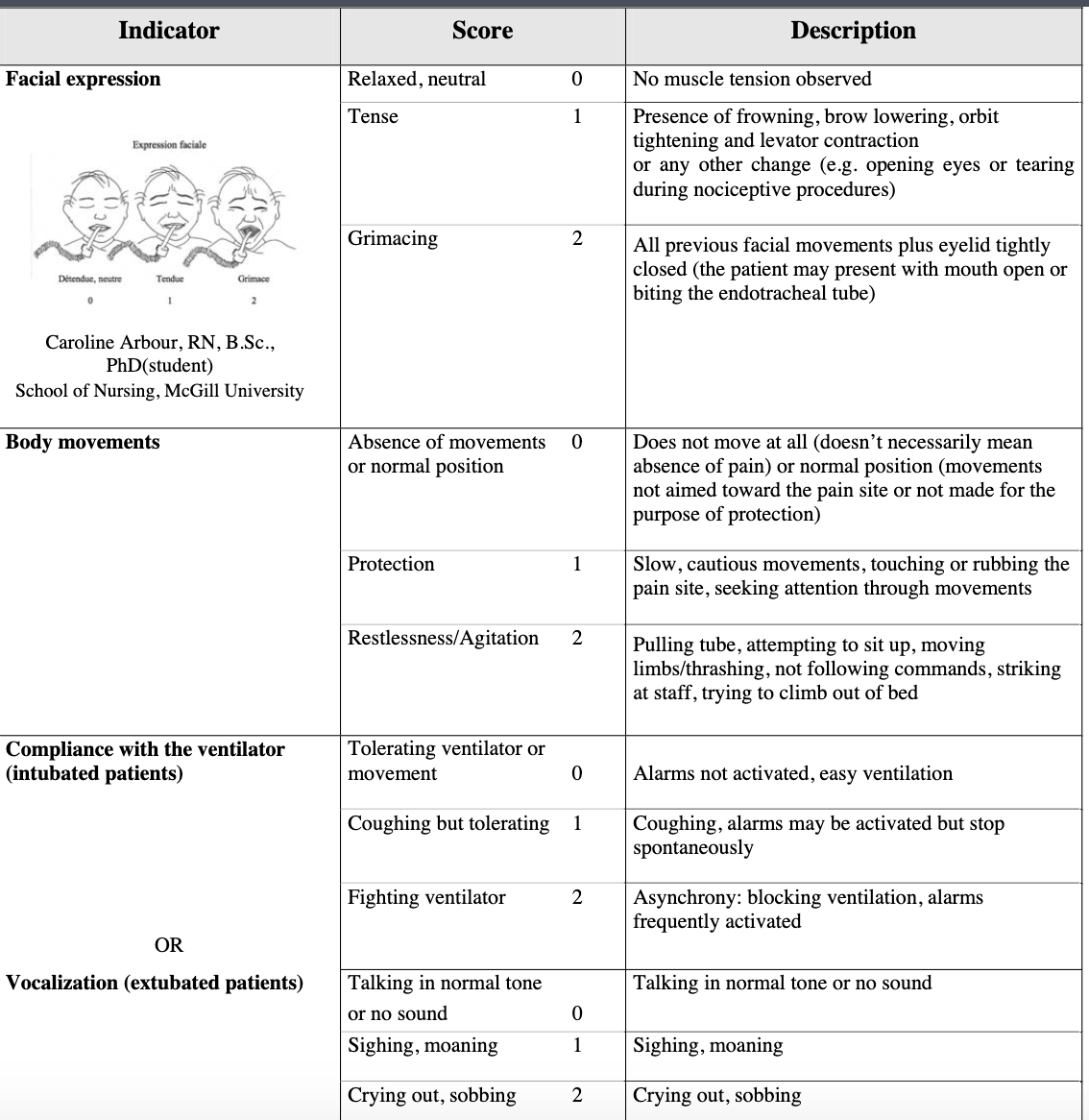 for nonverbal/ cant comprehend, like the FLACC but for adults