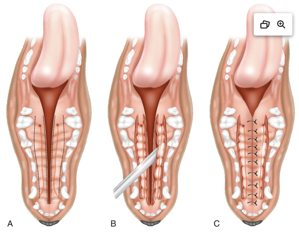List options for surgical correction of congenital hypoplasia of the soft palate