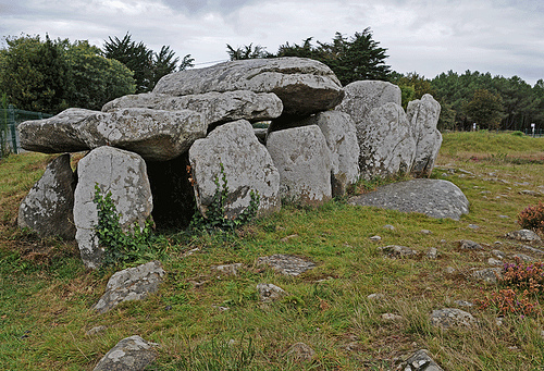 -Remains of a passage grave, post and lintel construction, covered with earth; Carnac