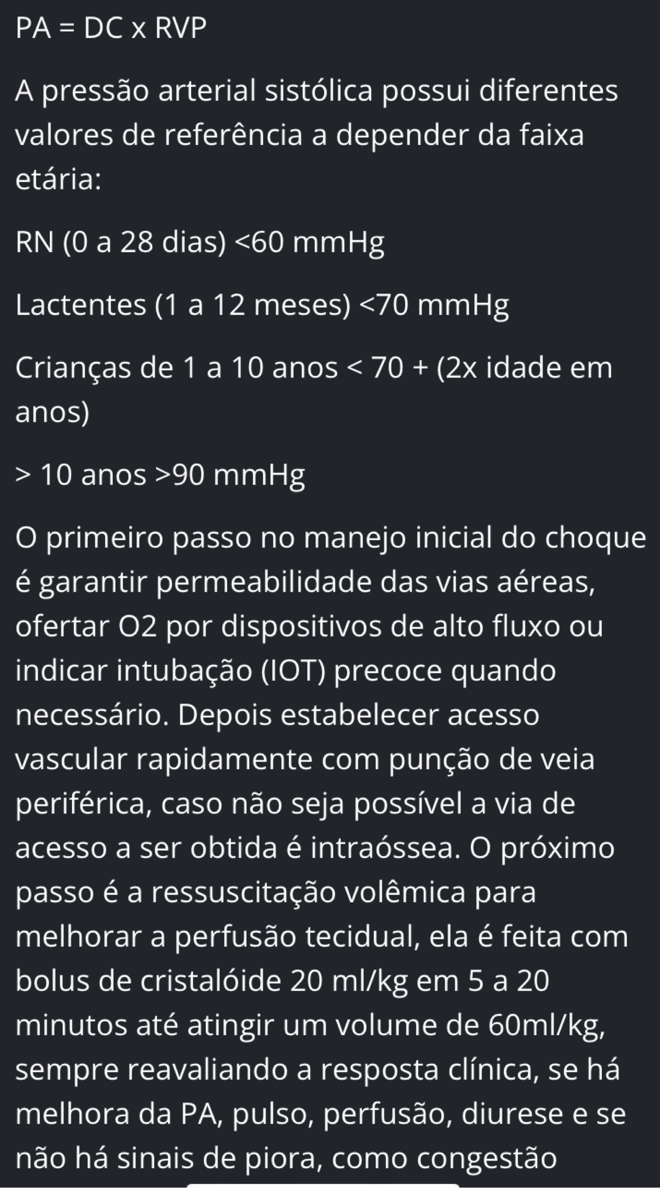 Valores de hipotensão de acordo com cada faixa etária pediátrica: