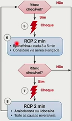 Adrenalina imediatamente e depois de RCP por 2 min, a cada 3-5 min