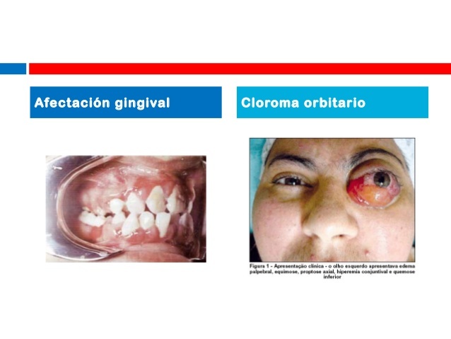 Paciente idoso, anemico e plaquetopenico, com leucocitose, com astenia, febre, petequias e equimoses, com hepatoesplenomegalia, hiperplasia gengival e cloromas com biospia de M.O. evidenciando > 20% de blastos e aspirado mostrando bastonetes de auer