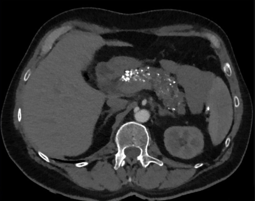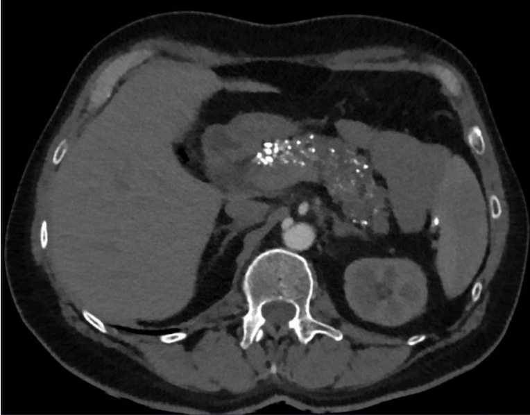 Shock –> decreased organ perfusion –> pancreatic necrosis –> pancreatic lipolysis –> peripancreatic fat