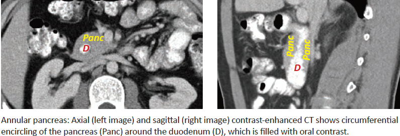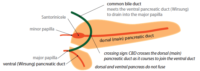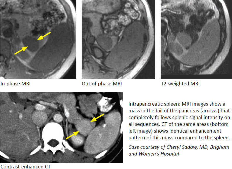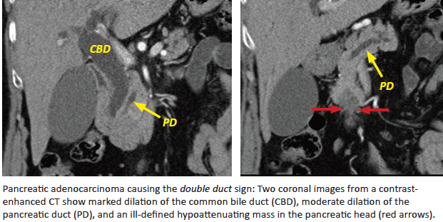 Since pancreatic adenocarcinoma is almost always associated with a dilated pancreatic duct, an alternative diagnosis should be strongly considered if there is a pancreatic mass with no ductal dilation, such as: