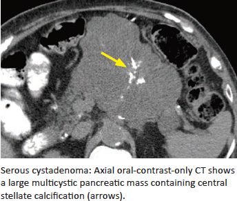Raffi Mnemonic: grandmas are so “serious” (i.e. serous) - they also have many small cysts, they are hypervascular, and grumpy central stellate calcification!