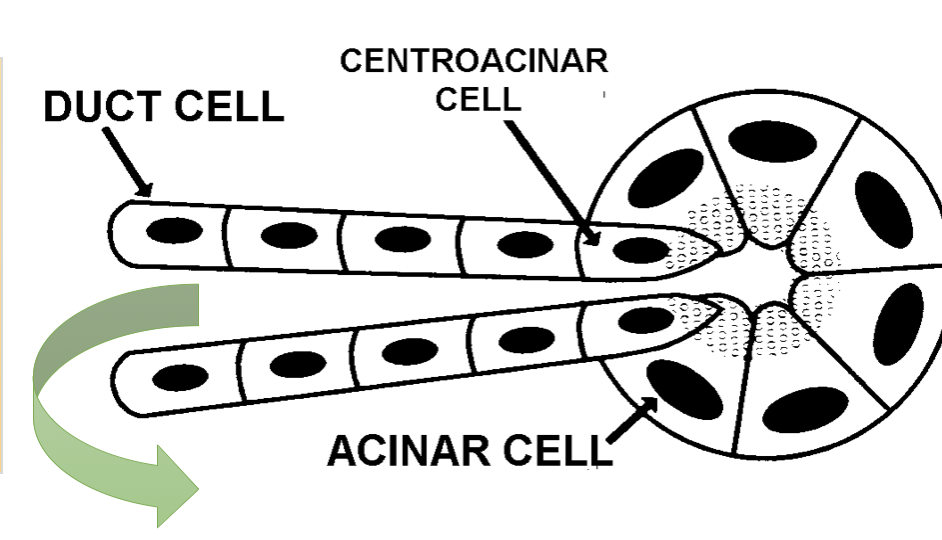 Acinar cell enzymes diffuse into periductal interstitial tissue