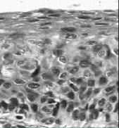 considered a high- grade lesion, refers to MODERATELY atypical cellular changes confined to the basal 2/3s of the epithelium (formally called moderate dysplasia) with preservation of epithelial maturation. There is considerable variability in this category