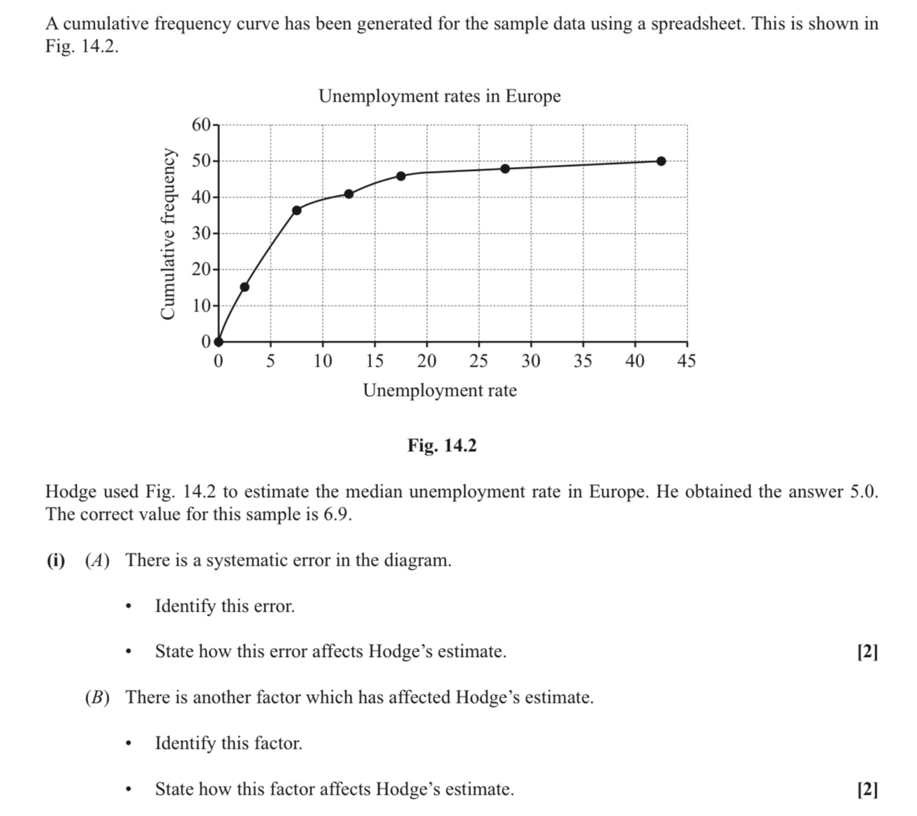 He has used grouped data (used the graph) this would reduce the error introduced by misplottinf
