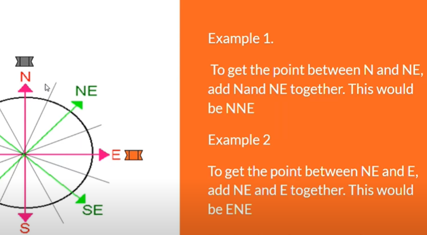 -note the directions it is between, and take one of the main cardinal directions to be first