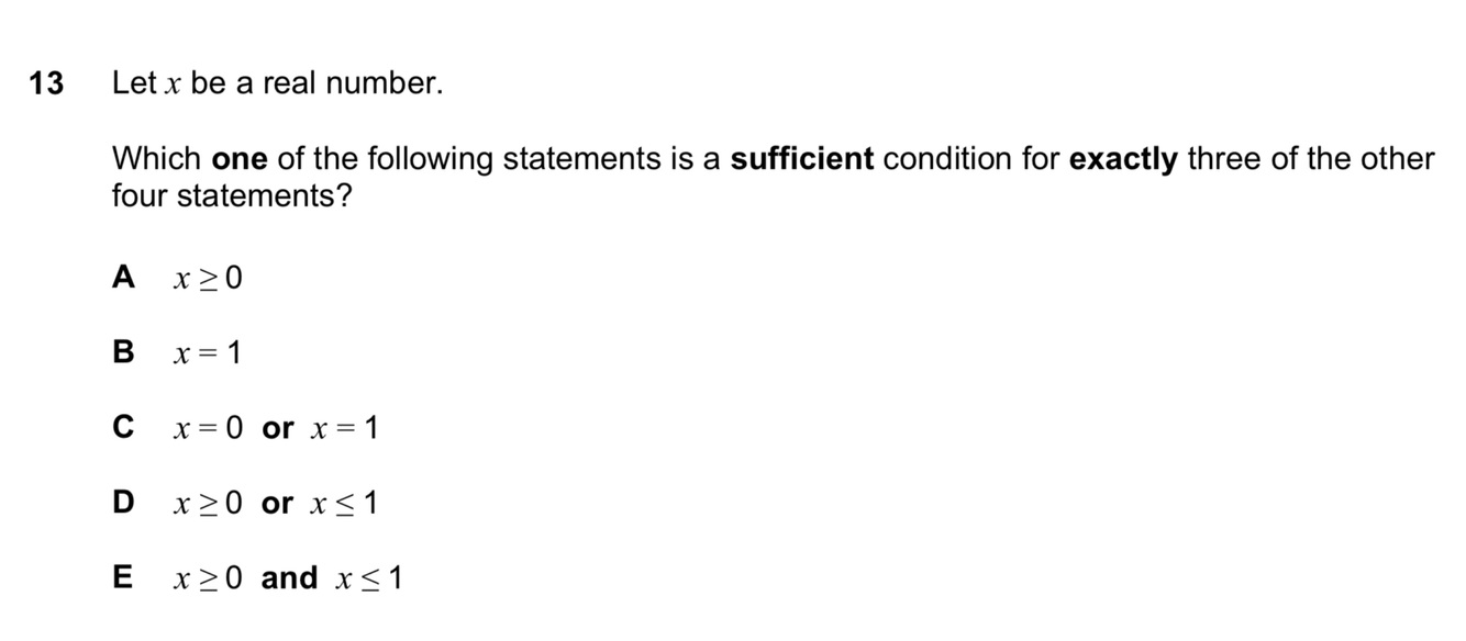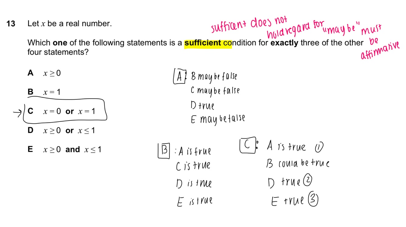 For a sufficient condition to be true, must be affirmative (100%) no maybes