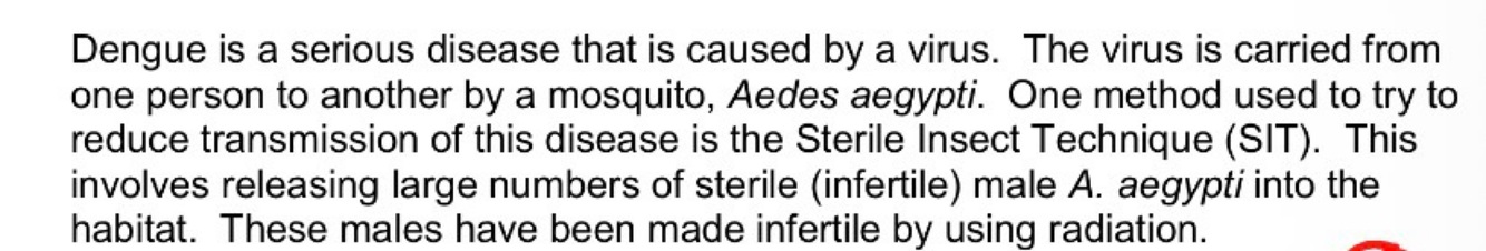 Explain how using the SIT could reduce transmission of dengue (2 marks)