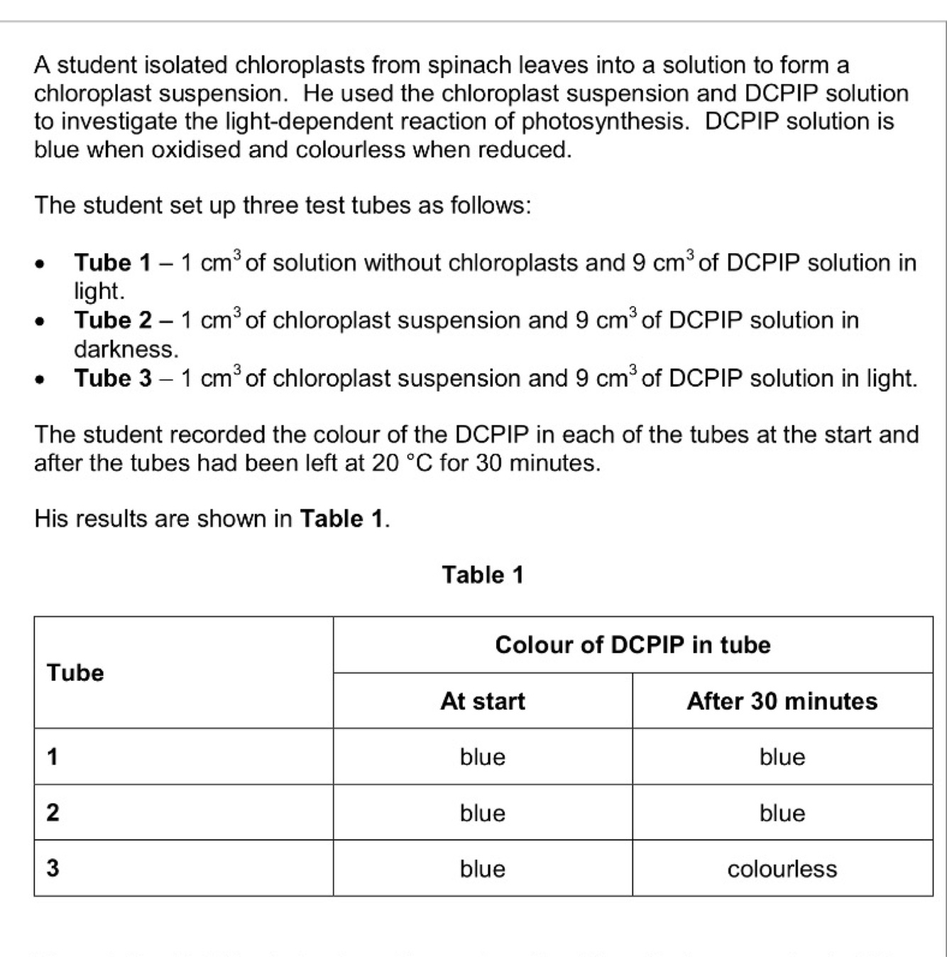 A student placed chloroplasts in a suspension that had the same water potential as the chloroplasts before an experiment. Explain why it was important that these water potentials were the same (2 marks)