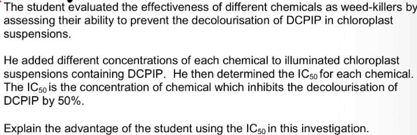 Explains the advantage of the student using the IC50 in this investigator (1 mark)