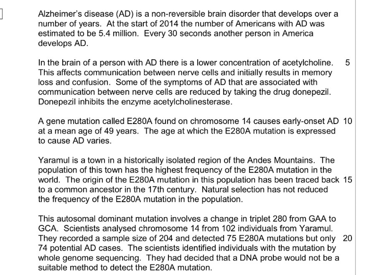 Suggest an explain two reasons why there is a high frequency of the E280A mutation in Yaramul (2 marks)