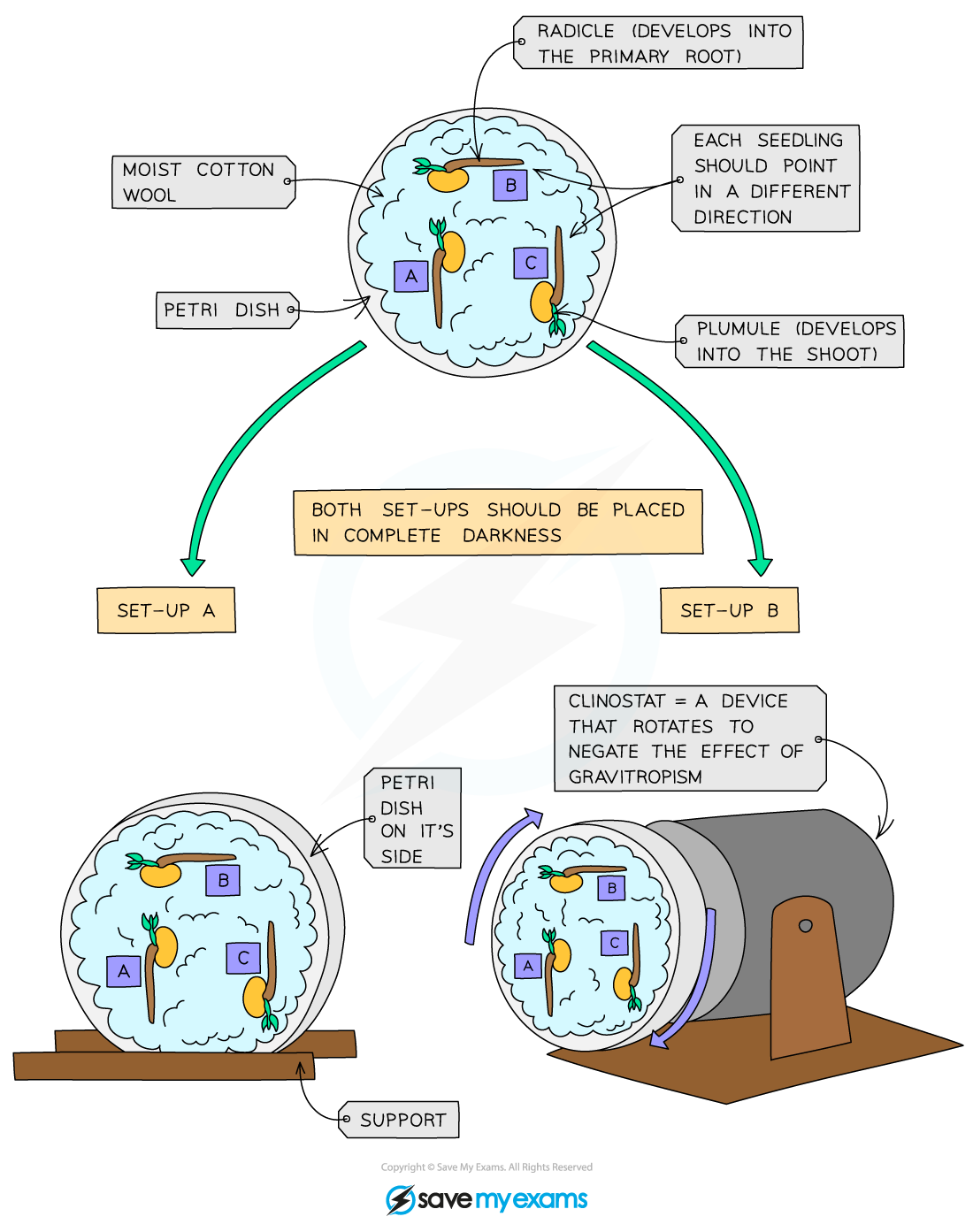Record the results of the seeds’ length measurements and create a labelled biological drawing to illustrate the effects of light or gravity.