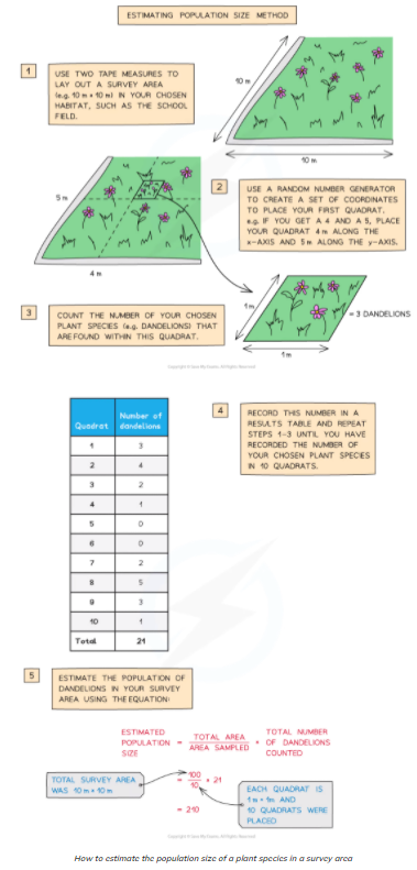 Required practical activity 9: measure the population size of a common species in a habitat using a QUADRAT