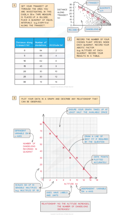 Required practical activity 9: measure the population size of a common species in a habitat using a Transect line