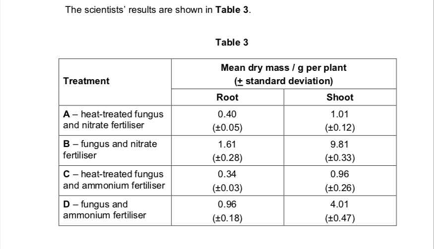 what conclusions can be drawn from the table about the effects of nitrate fertiliser and ammonium fertiliser on the growth of pea plants