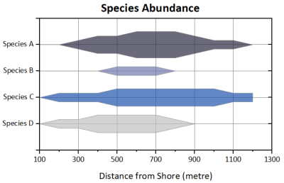 -displays the spread or dispersion of a single variable within a data set (like a distribution graph), eg test results within a class
