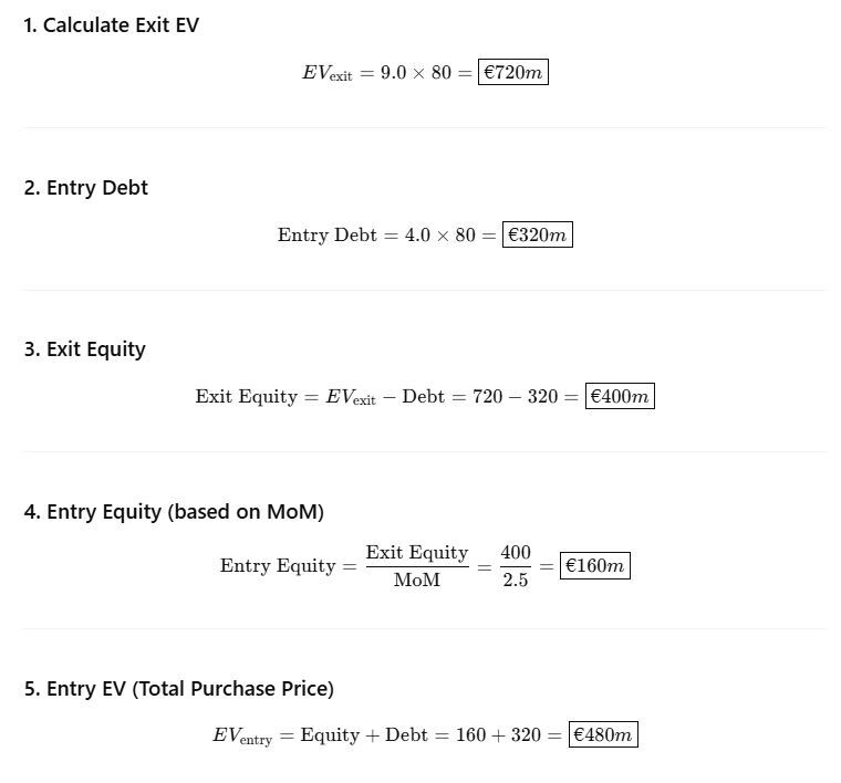→ The same enterprise value is achieved with less sponsor capital, hence more debt proportionally.