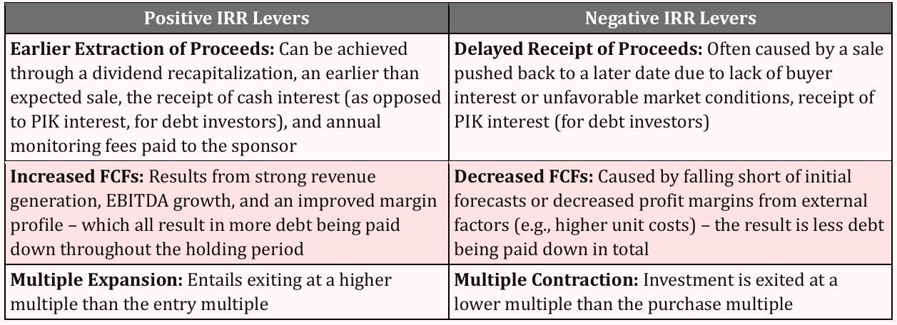 Reduces interest expense → boosts FCF → allows faster debt paydown or equity dividends → improves IRR.