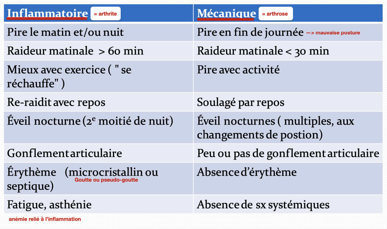 Différencier une atteinte inflammatoire et mécanique