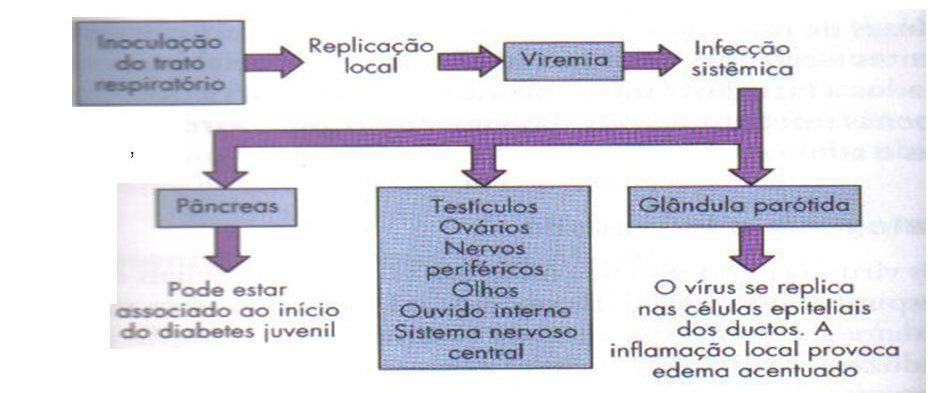 Infecta células do trato respiratório e se dissemina de forma sistêmica, infecções de parótida, testículo e SNC podem ocorrer.
