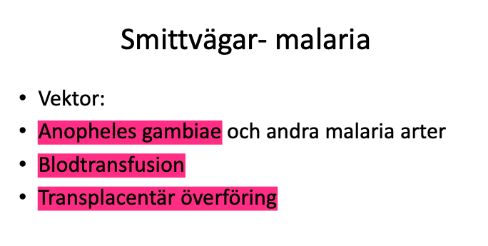 Smittvägar- malaria