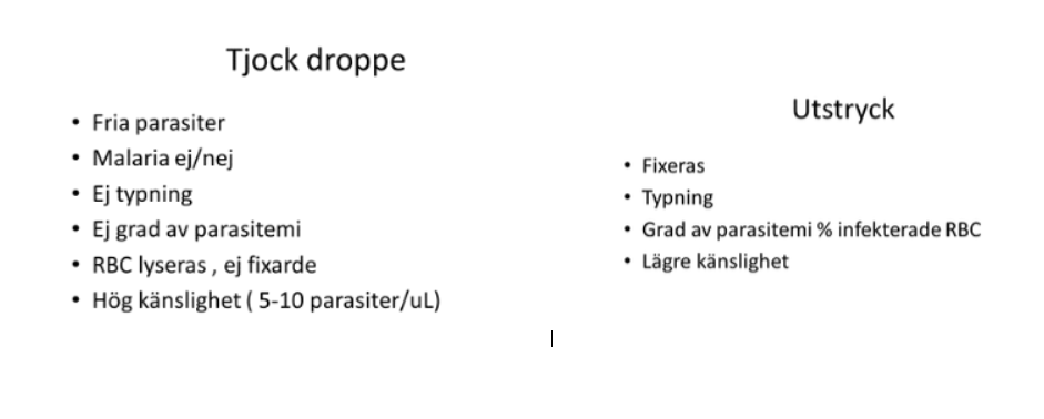 vid diagnostik av malaria kan du använda dig av utstryk resp tjock droppe, skillnad?