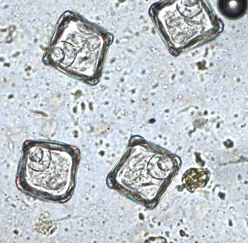 This is an image of Isospora suis, the cause of coccidiosis in pigs.