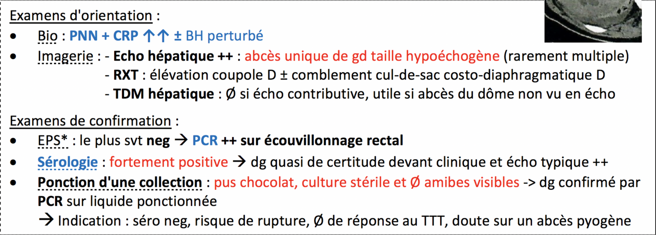 Examens complémentaires amoebose hépatique