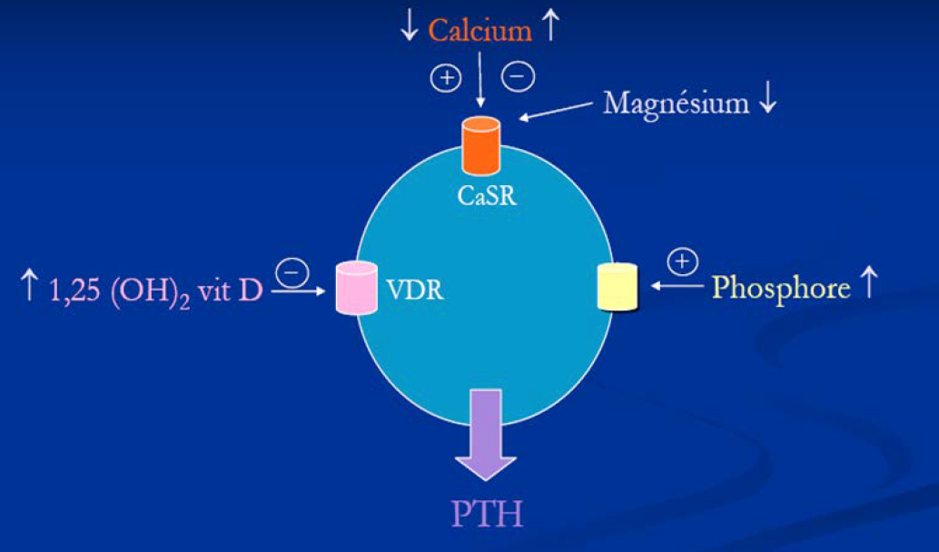 Qu’est-ce qui régule la sécrétion de la PTH? (4)
