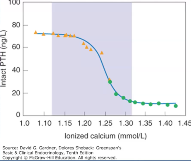 À une valeur maximale de calcium ionisé, on atteint un plateau de PTH basse (souvent indétectable au laboratoire)