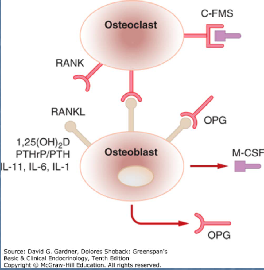 3) Diminuant l’ostéoprotègerine (OPG) qui prévient habituellement l’activation de l’ostéoblaste par sa liaison à l’ostéoclaste
