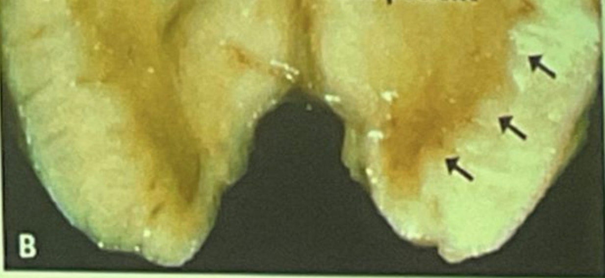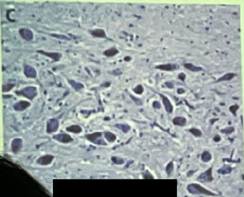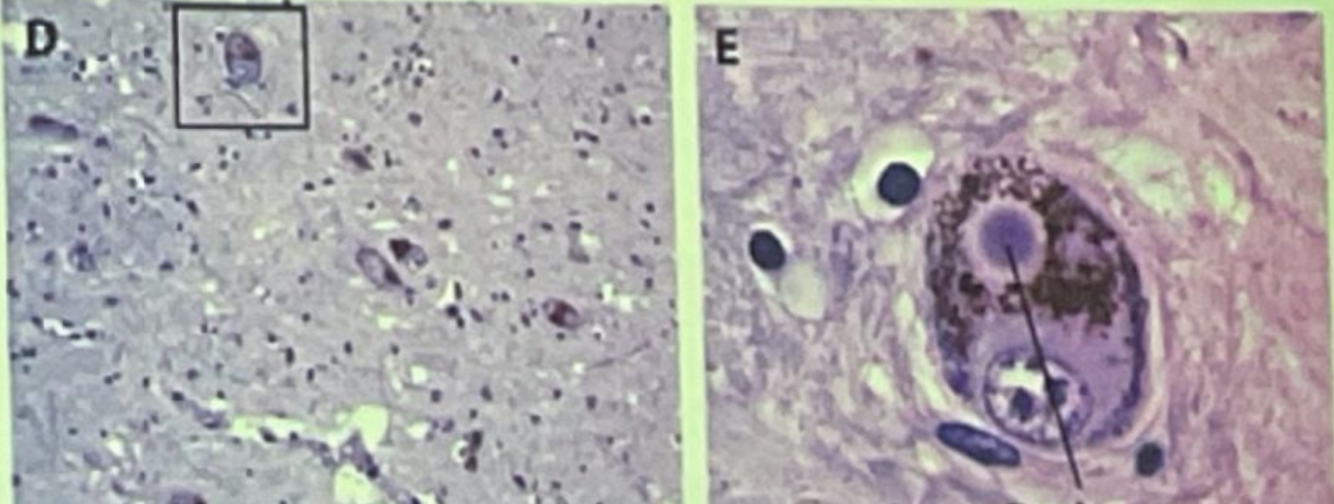 Paciente con enfermedad de parkinson (cuerpos de lewy a la derecha)