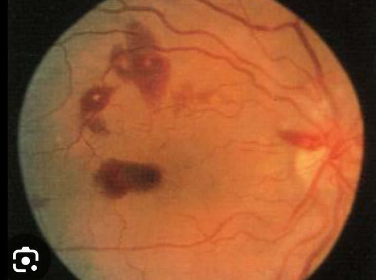 hemorrhagic retinal lesions with a pale centre seen on fundoscopy