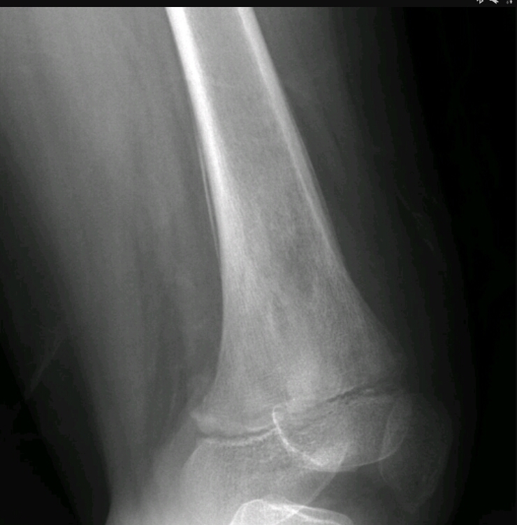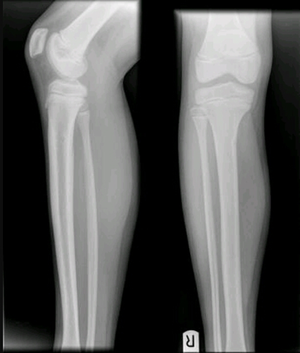 This patient has pain in the proximal tibia and he can take ibuprofen and it gets better. What are the findings and diagnosis?