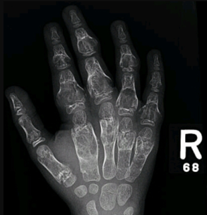 Impaired bone growth, short ulna, bowing of radius, subluxation of the radioulnar joint