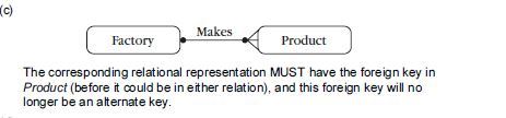 Note: An alternative representation of the Makes relationship has the foreign and alternate key in Factory and the constraint in Product.