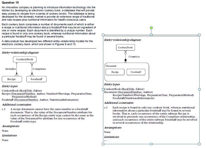 This question assesses your understanding of the problems that may arise from certain database designs. The two examples given here are typical, but other solutions are marked on merit.