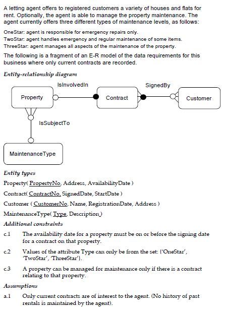 (d) Suppose that you wish to implement the relational representation given in your answer to part (a). Write down the SQL statement which creates a table with properties corresponding to the Customer relation, including a constraint which implements the mandatory participation of Customer in Orders. You may assume that the corresponding domains and any other relevant tables such as orders have been implemented.