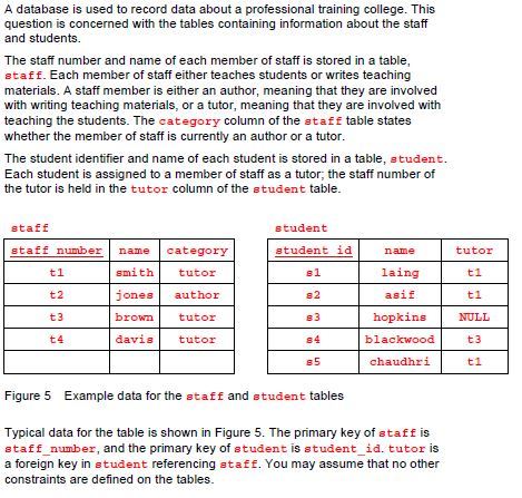 (i) First, the redundancy means that a failure to update the database correctly could lead to inconsistency. For example, the requirement that each project has exactly one manager would be violated if one row states that the project HiDef-TV is managed by staff member S273 and another row states that it is managed by staff member R376.