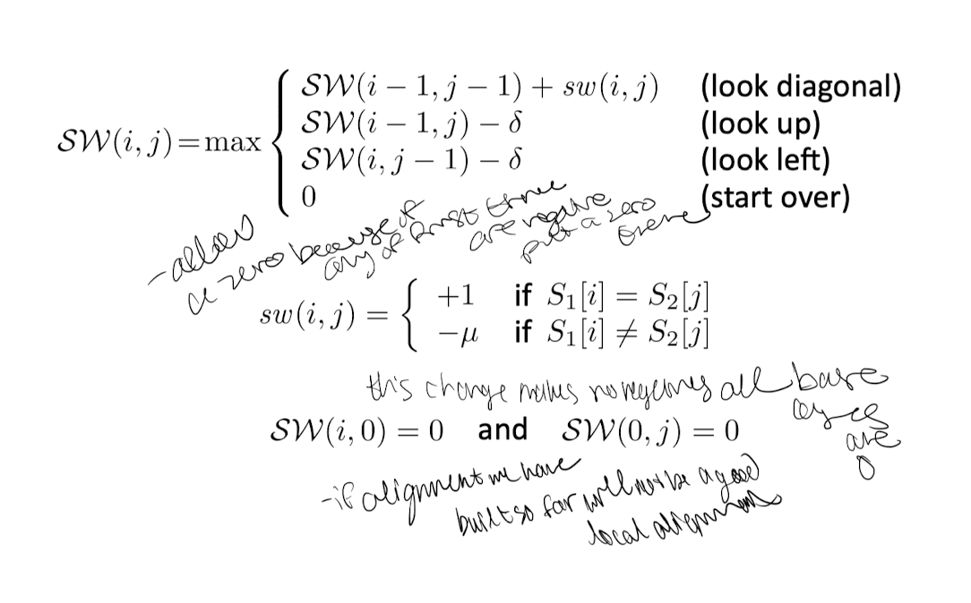 How does the Smith-waterman algorithm depend on sensible scoring?