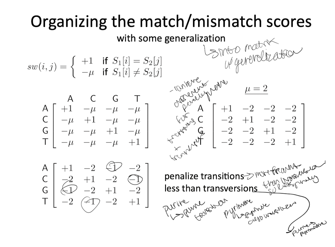 In organizing mismatch scores why do we penalize transitions less than transversions?