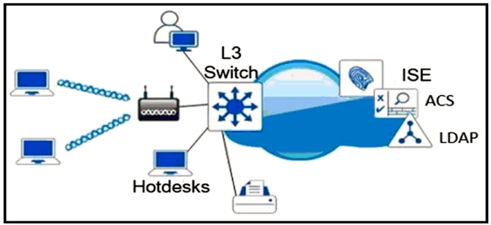 Refer to the exhibit. Which single security feature is recommended to provide Network Access Control in the enterprise?