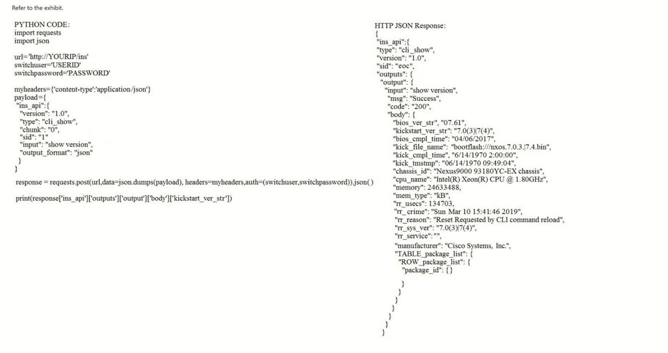 Which HTTP JSON response does the Python code output give?